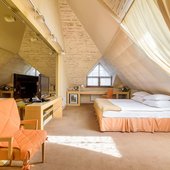 В отеле двадцать двухместных номеров с индивидуальным дизайном, десять из них – с балконами. В гостинице «Люмьер» работает SPA-комплекс с финской и паровой сауной, грот-душем впечатлений, купелью с горячей и холодной водой, соляным солярием.