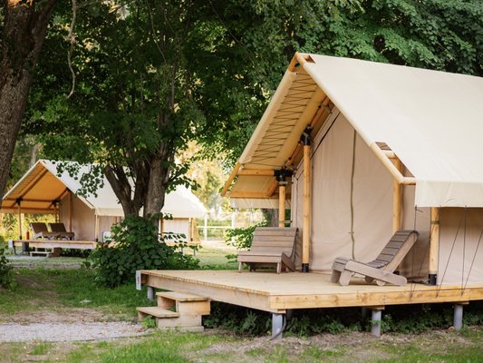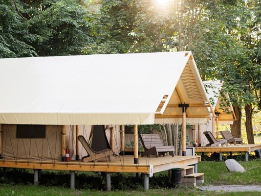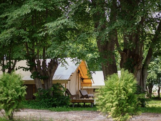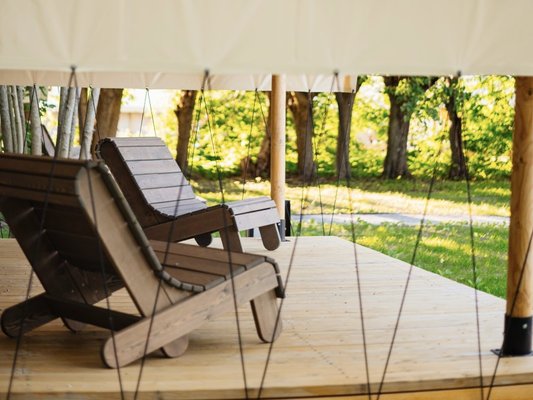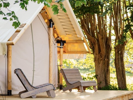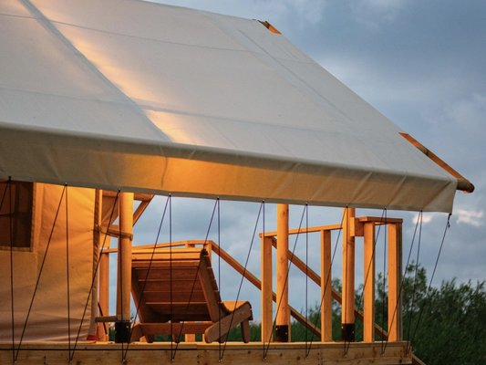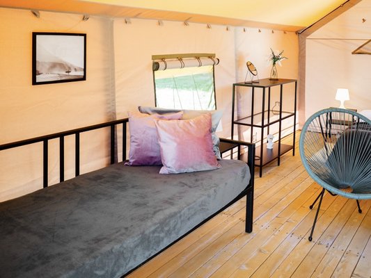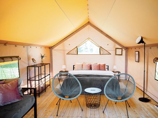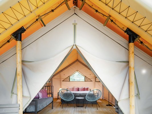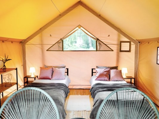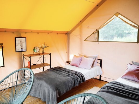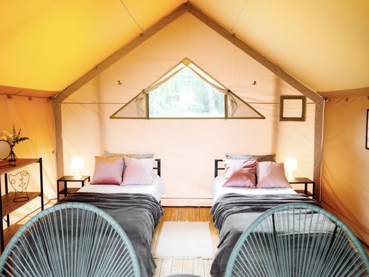 Для проживания предлагается 12 сафари-тентов, при необходимости дополнительно можно установить детскую кроватку. В номерах есть интернет, двуспальные и односпальные кровати, шкафы для хранения вещей, вентилятор, личный санузел на территории, а также кресла и столики. Предоставляются халаты, полотенца и постельное белье.