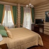 Все здания на территории комплекса выполнены из деревянных брусьев. Из них же построена и большая баня, в которой находятся бассейн, сауна, комната отдыха и 5 гостиничных номеров.