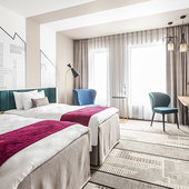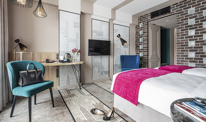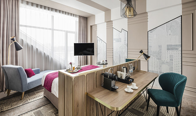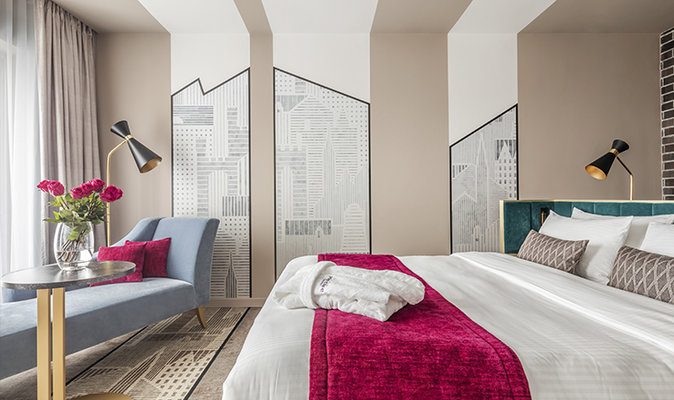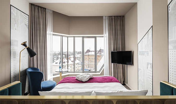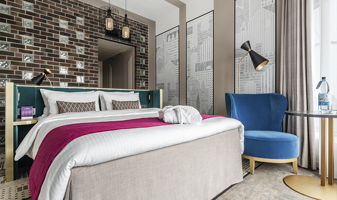 167 номеров различных категорий погружают в уютную и аутентичную атмосферу, вдохновленную переплетением культур в городе, а также творчеством Гофмана и Чайковского. К услугам гостей фитнес-зал, сауна, хаммам, модульные конференц-залы, лобби-бар и стейк-хаус «Торро Гриль».