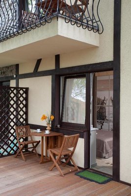 Все номера индивидуально оформлены в разных цветовых гаммах, каждый с балконом и спутниковым телевидением. Окна номеров выходят на море или в сад отеля.