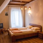 В главном корпусе гостевого дома располагаются пять двухместных номеров категории Стандарт, один трехкомнатный Люкс, семейный четырехместный номер и номер для новобрачных.