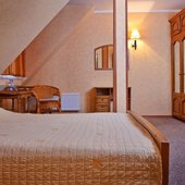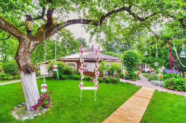 Райский уголок совсем рядом. Всего 10 минут от центра Калининграда и вы оказываетесь на лоне природы, в прекрасном яблоневом саду, где растут дивные цветы и беседки увиты плющом. В камине потрескивают дрова, на стенах старинного дома развешены охотничьи трофеи, услужливые официанты приносят вам вкуснейшие блюда и напитки, на мангале готовится шашлык, настоящая русская баня на дровах готова принять вас в свои жаркие объятья, маня ароматом дубового веника.