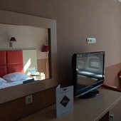 В отеле имеются номера для инвалидов, оснащенные всем необходимым: поручни, широкие дверные проемы. Раковина расположена непосредственно в номере. Подход к отелю оснащен пандусом, что поможет беспрепятственно перемещаться, а панорамный лифт доставит вас прямо к номеру.