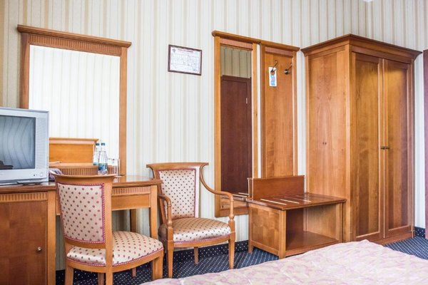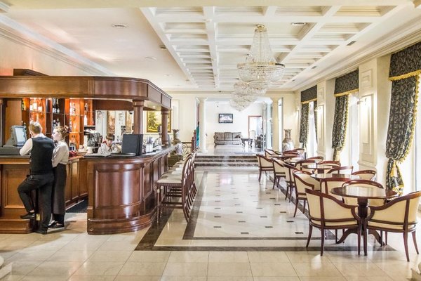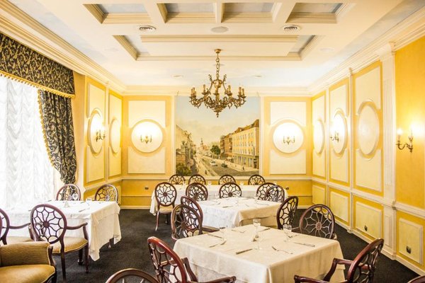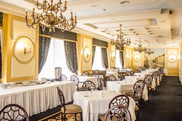 В элегантном ресторане отеля подают изысканные блюда русской и европейской кухни. Ресторан украшен мрамором, ценными породами дерева и люстрой. Напитки можно заказать в лобби-баре.