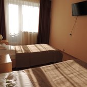 Всего в отеле 77 номеров разнообразных категорий, рассчитанных на людей с различным уровнем достатка. Доброжелательный и отзывчивый персонал гостиницы, индивидуальный подход к каждому клиенту и внимательное отношение к пожеланиям постояльцев создают домашнюю, уютную атмосферу.