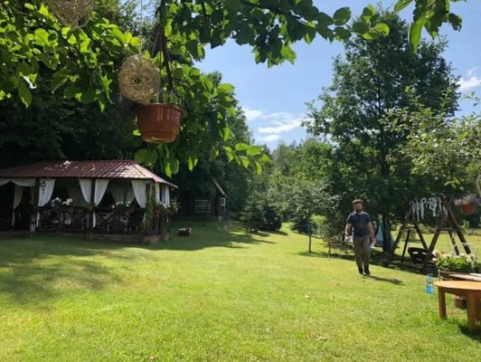 На территории есть крытые беседки, место для костра, батут, качели, гамаки и велосипеды с байдарками для любителей активного отдыха.