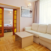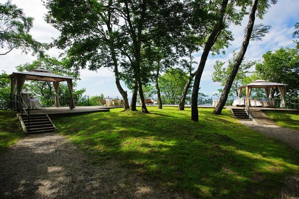 Расположенный в уникальной березовой роще, на высоком берегу Балтийского моря, отель «Русь» считается одним из самых уютных уголков на побережье. Всего в 5 минутах ходьбы через парк, находится центр курорта и променад. В нескольких метрах от отеля – лестничный спуск, который ведет к песчаному пляжу.