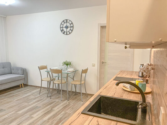 Стильные апартаменты с одной спальней, расположенные на первом этаже нового жилого комплекса премиум-класса «Легенда». Отдельный вход, просторная планировка и уютная атмосфера — все, что нужно для комфортного отдыха.