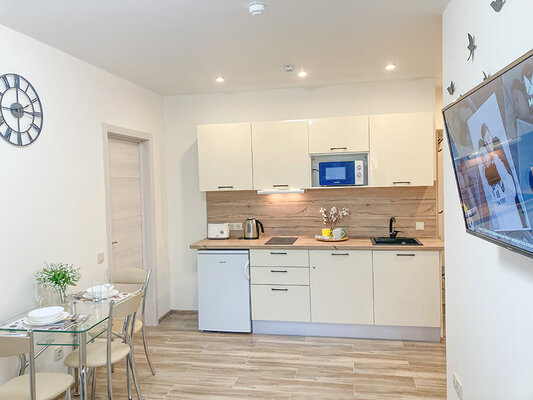Рядом расположены кафе, рестораны, магазины и большая часть достопримечательностей города. Всего в 10 минутах ходьбы спуск к морю, 400 метров от Театра Эстрады «Янтарь-холл», где в летнее время проходит главное событие года — музыкальный КиВиН.