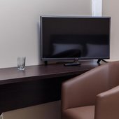 Комфортабельные номера оформлены в теплых тонах и оснащены телевизором с плоским экраном. В собственной ванной комнате предоставляются бесплатные туалетно-косметические принадлежности.