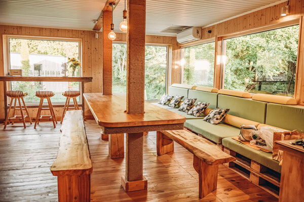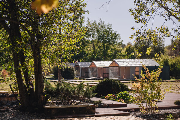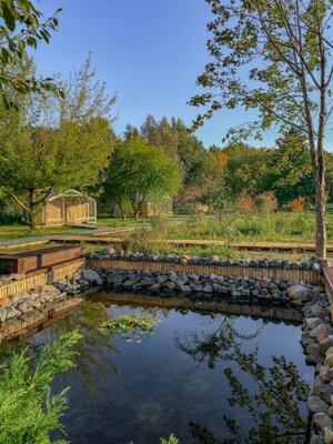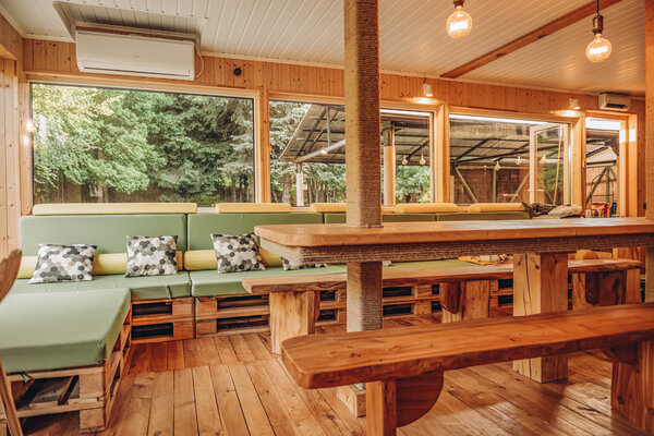 На территории глэмпинга расположен банный комплекс с парилкой на 12 гостей, открытой верандой и сибирским чаном на дровах.
