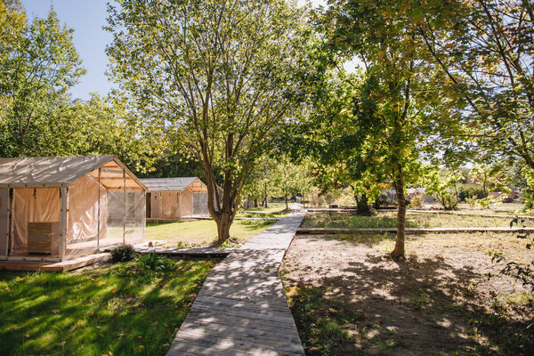 Глэмпинг «Тихая гавань» находится в спокойном районе города Светлогорска с низкорослой застройкой, окруженный парковой зоной с обилием зелени и фруктовых деревьев. Территория лагеря огорожена и оборудована системой видеонаблюдения.