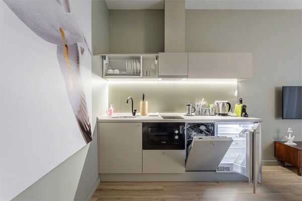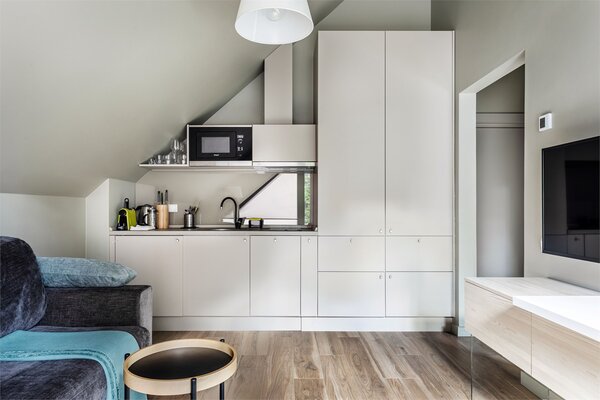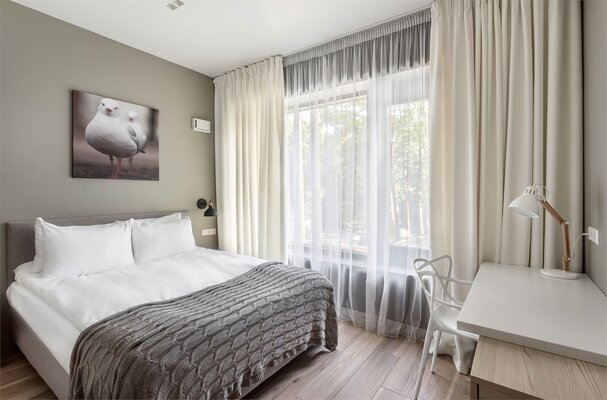 Всего в десяти минутах пешком — главные достопримечательности, изысканные рестораны, знаменитый Променад с панорамным лифтом, очаровательное Тихое озеро, Органный зал и знаковая водонапорная башня. Современные инженерные решения, такие как вентиляция, кондиционирование и система «умный дом» с теплыми полами, обеспечивают максимальный комфорт. Апартаменты, рассчитанные на 3-4 гостя, располагают просторной общей террасой с видом на лес, идеальной для отдыха и погружения в атмосферу Светлогорска.
