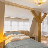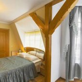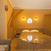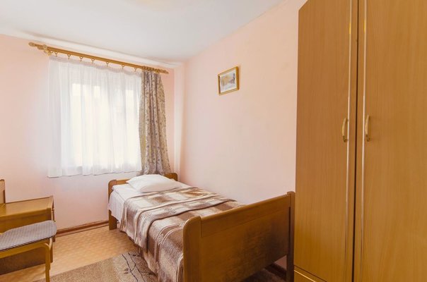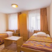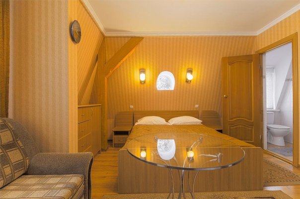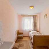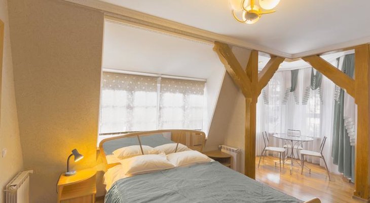 Два небольших корпуса отеля «Золотая бухта» разместились в тихом районе города в окружении лесного массива. Номерной фонд предлагает гостям номера двух категорий — «Стандарт" с собственной ванной комнатой и «Эконом» с общим санузлом на этаже. Просторные номера укомплектованы стандартным набором мебели и бытовой техники.