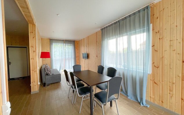 Расположенный в живописном Жуковском районе Калужской области, гостевой дом «Барнхаус Сова» предлагает уникальное сочетание современного дизайна и функциональности. Этот просторный двухэтажный таунхаус площадью 83,4 кв. м, построенный в 2022 году по эксклюзивному авторскому проекту, воплощает эстетику минимализма в стиле барнхаус. Четыре уютные комнаты готовы принять до шести гостей, а при необходимости доступны два дополнительных спальных места, что делает его идеальным выбором для незабываемого семейного отпуска или отдыха с друзьями.