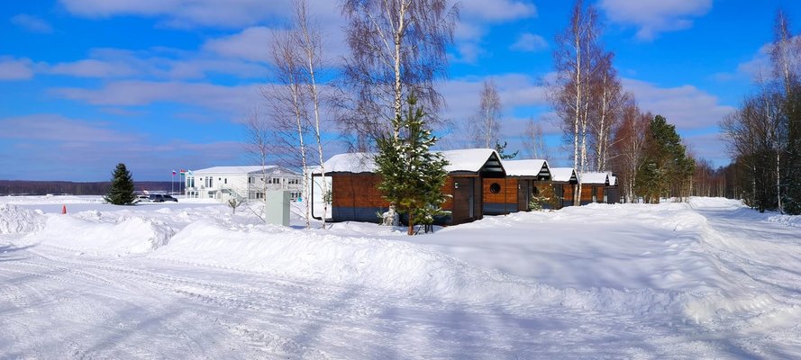 На территории авиадеревни гости могут насладиться охотой или рыбалкой, побывать в бане или устроить барбекю.