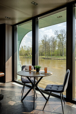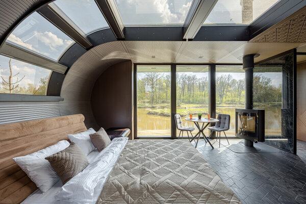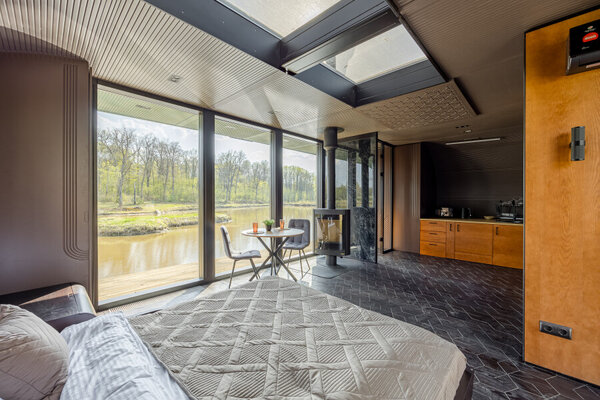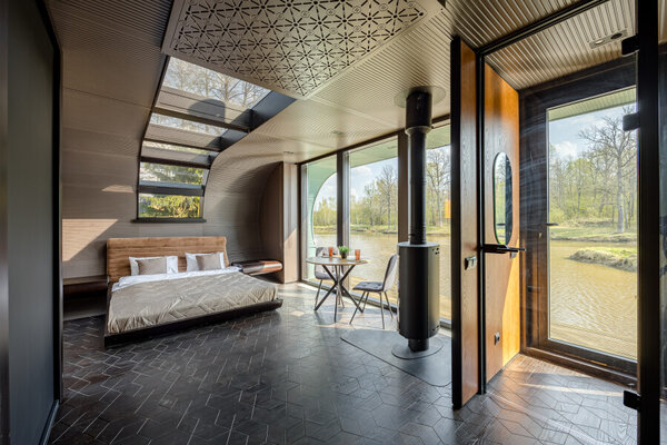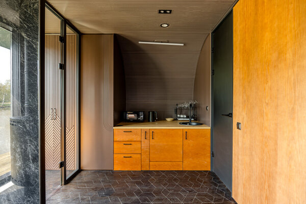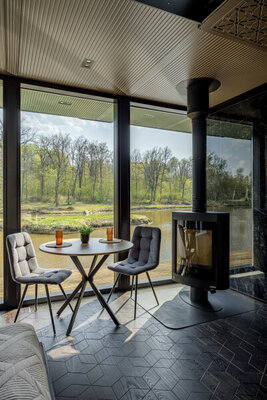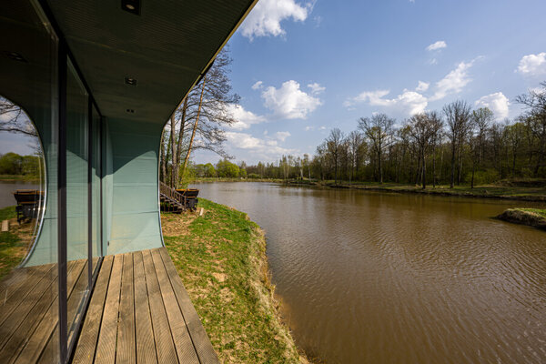 На берегу озера расположена кальянная с 4 застекленными полусферами для отдыха гостей Buhlovo Park. Каждая сфера вмещает в себя до 15 человек.