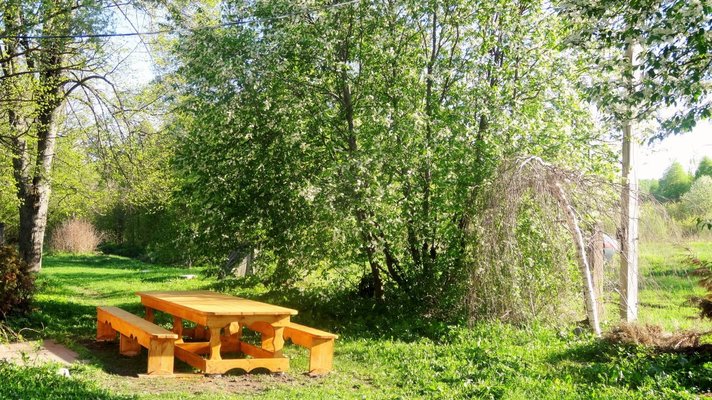 Аутентичность банному парению придаёт расположение бани и чана – вдали от всех домиков и в окружении вековых сосен.