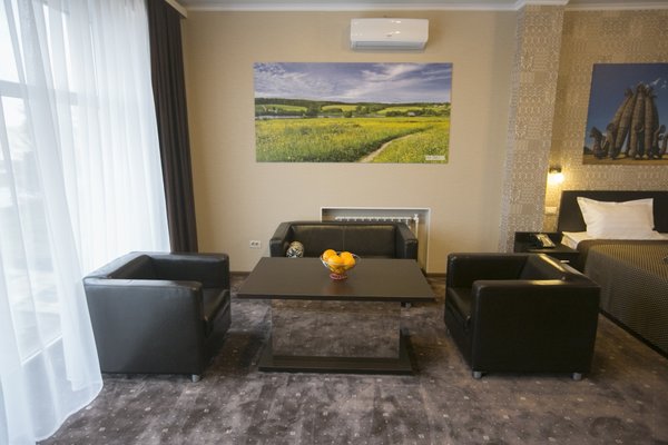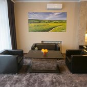 К услугам постояльцев 14 комфортабельных, светлых и просторных номеров. В каждом имеется: холодильник, кондиционер, телевизор, бутылка воды, полотенца, тапочки, индивидуальное отопление, Wi-Fi, принадлежности для душа.