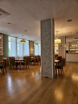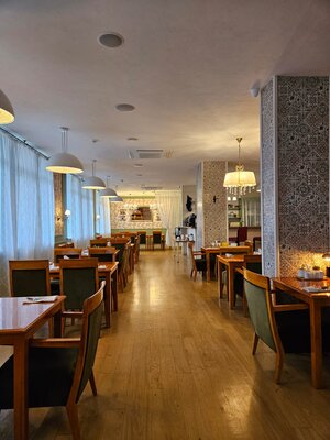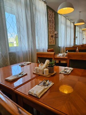 На первом этаже гостинично-ресторанного комплекса расположен уютный ресторан с блюдами домашней кухни, а также бар и банкетный зал «Каприз», работающий по предварительной записи.