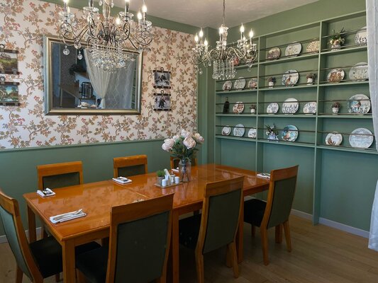 Зал оборудован всем необходимым для проведения всевозможных праздников, корпоративов, мероприятий, банкетов, свадеб, юбилеев, поминальных обедов, конференций, ретритов, тренингов и т. д.