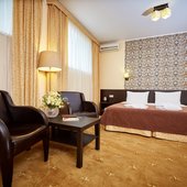 Номерной фонд располагает широким выбором комфортабельных номеров различных ценовых категорий. Мягкие ковровые покрытия, элегантный декор, наличие необходимых удобств и функциональной мебели создают незабываемую располагающую атмосферу.