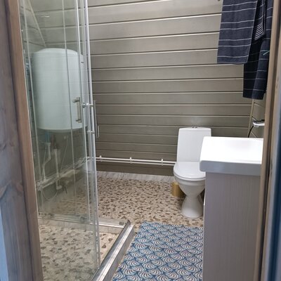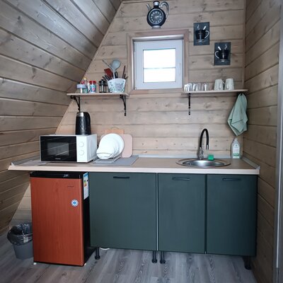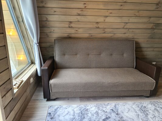 На первом этаже дома вас встретит уютная гостиная, совмещенная с полностью оборудованной кухней. Для вашего комфорта предусмотрен двухместный диван-кровать. Поднявшись по лестнице, вы окажетесь в спальне с ортопедическим матрасом, который подарит вам крепкий и здоровый сон. Мягкое постельное белье и пушистые полотенца уже ждут вас.