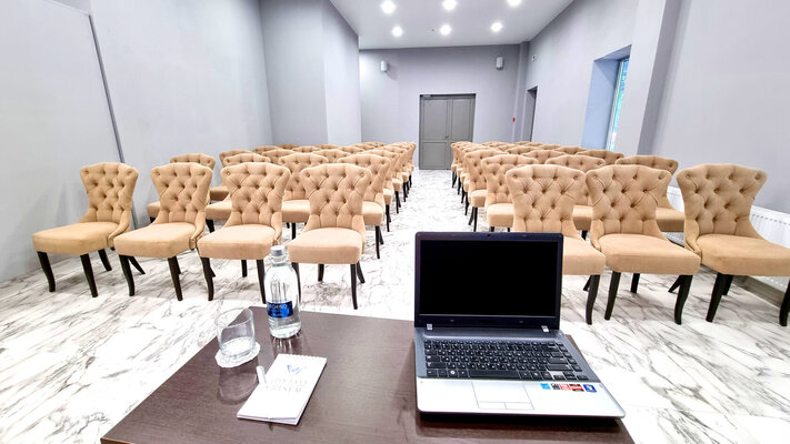 Конференц-зал отеля, вместимостью до 50 человек, сможет комфортно разместить всех ваших гостей. Зал позволяет создавать конфигурации рассадки, проводить кофе-брейки, фуршеты, банкеты, презентации, семинары, тренинги, корпоративные мероприятия, деловые встречи, а также оснащен новейшим современным аудиовизуальным оборудованием и системой индивидуального кондиционирования.