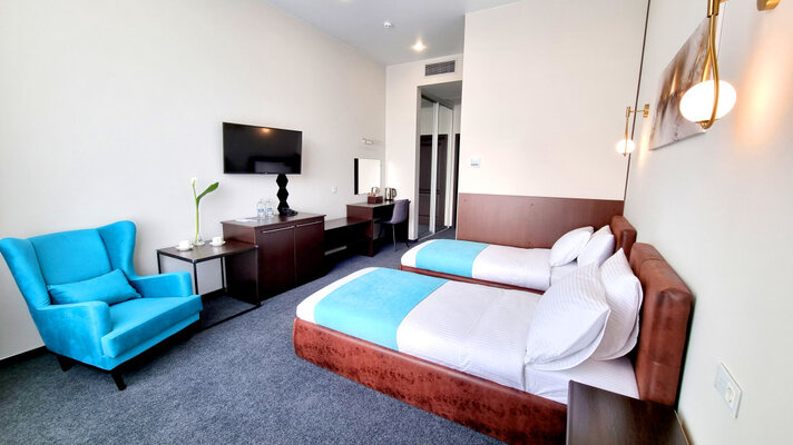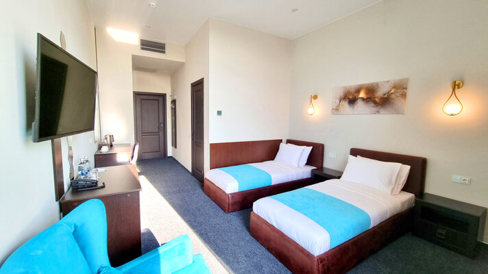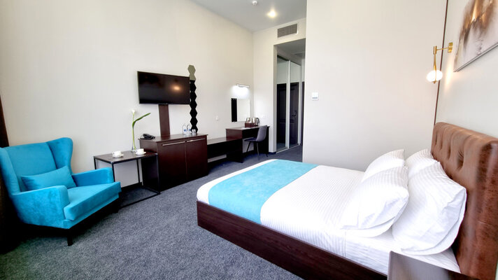 Построенный по высочайшим стандартам гостиничного бизнеса, этот новейший отель предлагает гостям исключительный уровень сервиса и эксклюзивную атмосферу. Каждый номер, выполненный в изысканном стиле, гарантирует безупречный комфорт, соответствующий последним мировым тенденциям.