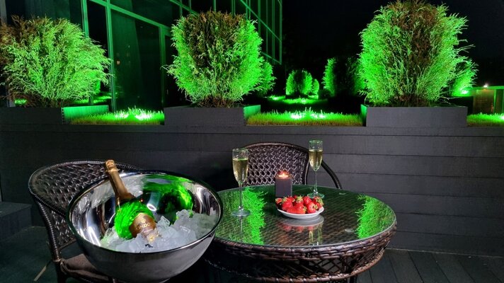 Для истинных ценителей изысканности, «Кристалл» предлагает особые номера с летними террасами, джакузи, собственными саунами и даже небольшими бассейнами.