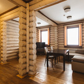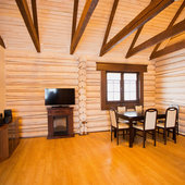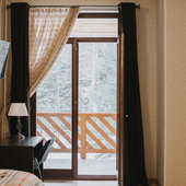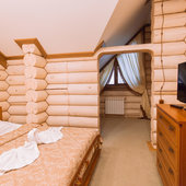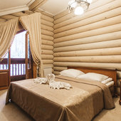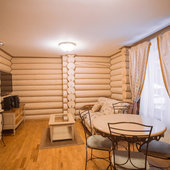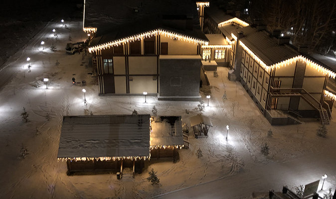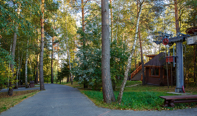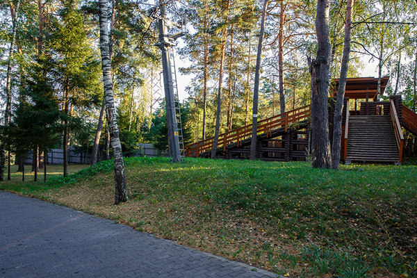 Гостиничный комплекс занимает благоустроенную, озелененную территорию площадью 15 гектаров. Гостям предлагаются жилые трехэтажные корпуса и отдельно стоящие коттеджи. Отдыхающих ожидают комфортабельные номера, большинство из которых оформлены в эко-стиле. В каждом имеется необходимая мебель, техника и санузел с душем, ряд коттеджей оснащен собственной сауной.
