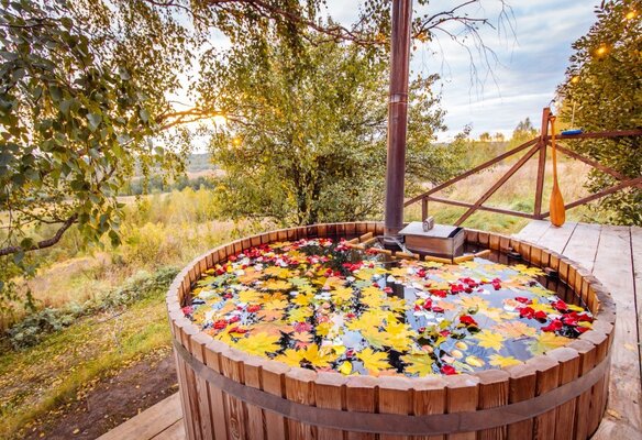 Расслабьтесь в горячей купели, вдыхая свежий вечерний воздух и любуясь ярким закатом. Почувствуйте счастье здесь и сейчас! Возможно дополнительное оформление!