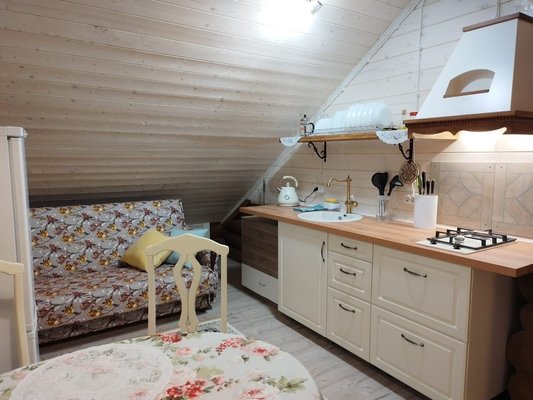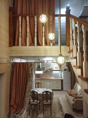 В коттедже — комфортабельные номера с санузлом, деревянной мебелью и бытовой техникой. Стильный интерьер, теплая цветовая гамма и домашняя атмосфера создают ощущение комфорта и уюта, позволяя гостям расслабиться и отдохнуть. Дом может сдаваться как по этажам, так и целиком.
