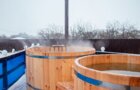 Японские бочки офуро на улице с горячей и холодной водой. На 3 человека каждая.