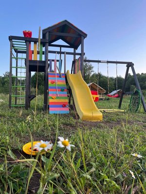 Рядом находится костровище, детская и спортивная площадка, а также батуты.