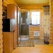 Комфортабельные бревенчатые дома в русском стиле (с русской печкой). Отопление печное, электрическое, батареи. водопровод (собственная скважина с минерализованной водой), санузел с душевой кабиной.