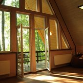 Территория базы отдыха «Солнечная на Оке» протянулась вдоль высокого берега реки Оки. Все постройки искусно вписаны в непотревоженный лесной ландшафт. Жилая часть расположена в южной половине комплекса. Остановиться можно в одном из 7 уютных коттеджей, в которых могут свободно разместиться от 4 (6) до 8 (10) человек, а также в небольшой гостинице на 24 номера.