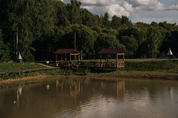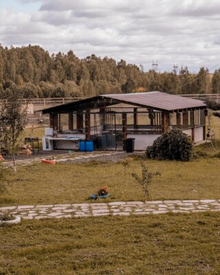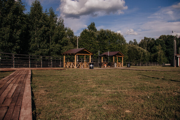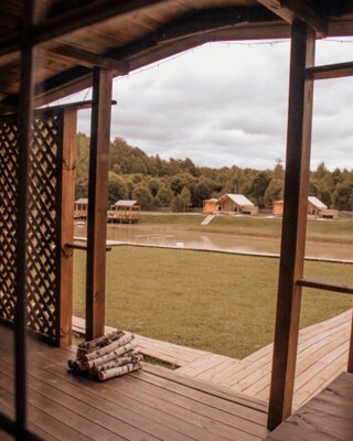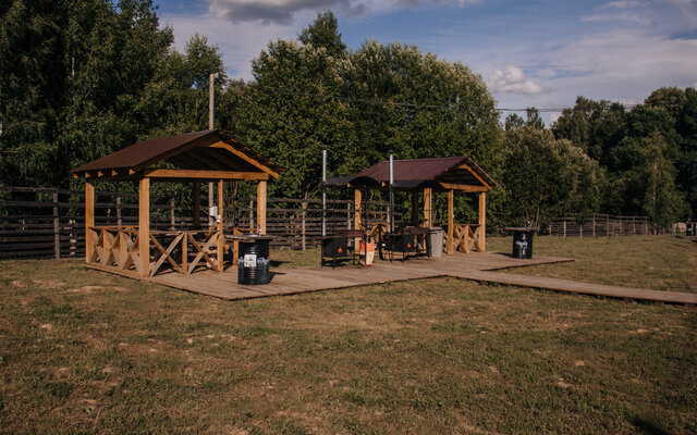 Просторная и комфортабельная беседка с окнами вмещает до 25-30 гостей и идеально подходит для крупных мероприятий и праздников. В ней есть розетки, и ее можно арендовать даже без проживания на территории отдыха. В аренду беседки не включена аренда самовара.