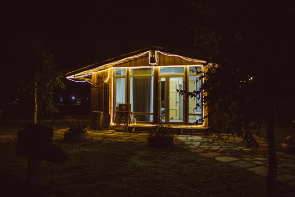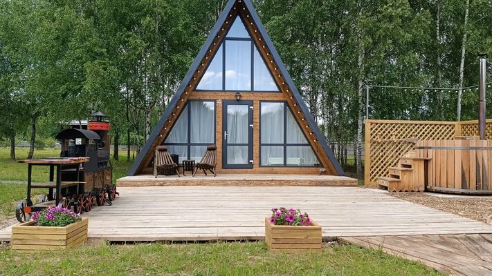 При заказе домика типа А-фрейм вы получите возможность насладиться водными процедурами в горячей купели Фурако. В остальных случаях аренда купели оплачивается отдельно — 3500 ₽.