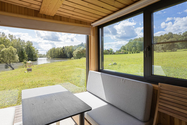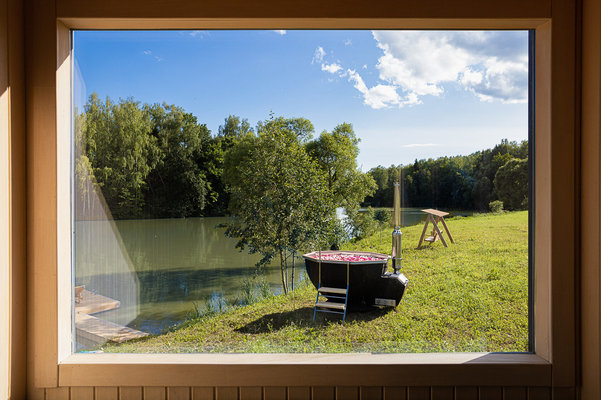 Баня на дровах с панорамным видом на реку, купель большая терраса с навесом, пирс с 2 лежаками, туалет и душ, комната отдыха, чайник, фен, халаты, косметика и мангал, чан за дополнительную плату.