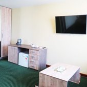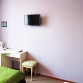 Во всех светлых номерах гостинично-ресторанного комплекса «Юбилейный», оформленных в классическом стиле, есть кабельное телевидение и ванная комната с душем.