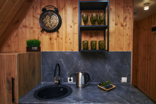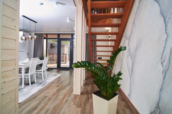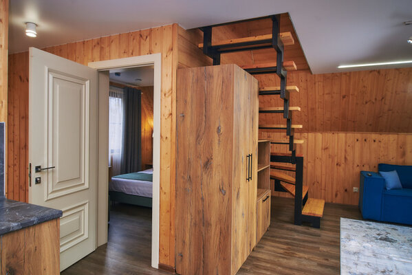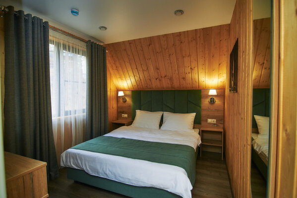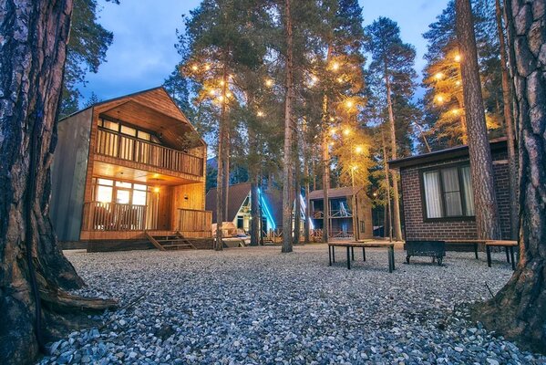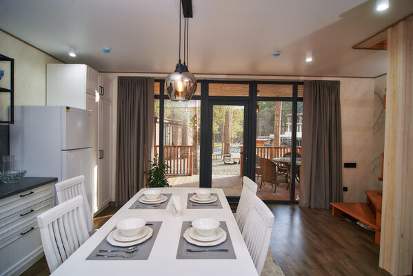 Двухместные домики «A-frame» и «Бaрнxаус» построены из экологически чистого дерева, обеспечены дополнительной шумоизоляцией и оснащены теплыми полами, удобной мебелью, полностью оборудованной кухней, бытовой техникой и всеми необходимыми удобствами.