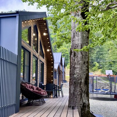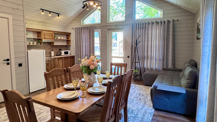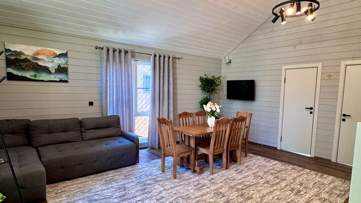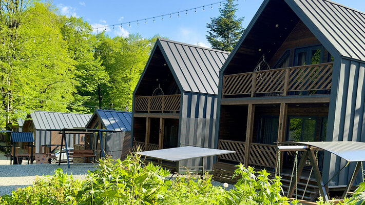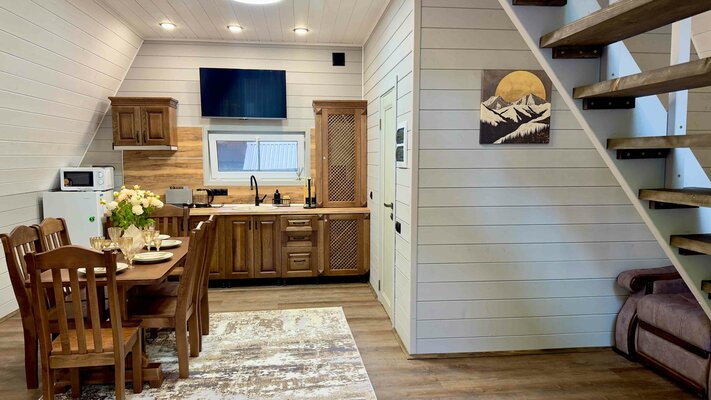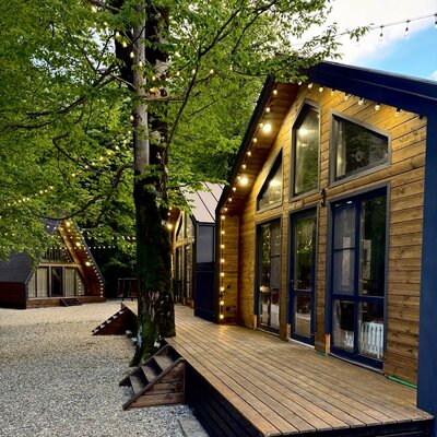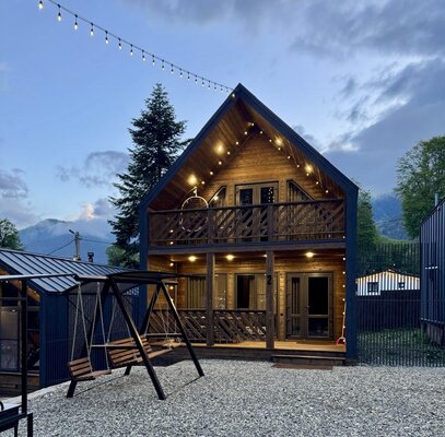Гостевые дома «Альбор» в Архызе — это современный и комфортный отдых в окружении живописной природы. К вашим услугам стильные барнхаусы и домик А-фрейм, оборудованные всем необходимым: кухней с техникой, телевизором, Wi-Fi, удобными спальнями и современными санузлами.
