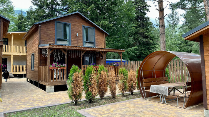 Для удобства гостей «Архыз Шале» предлагает зону барбекю с мангалом, Wi-Fi и парковку.