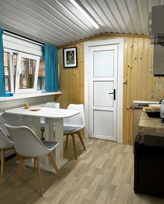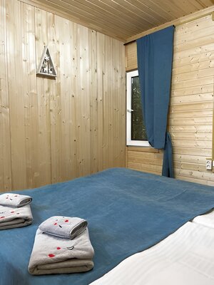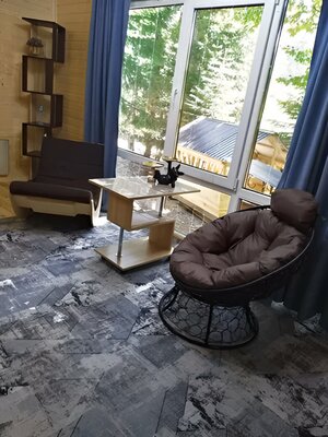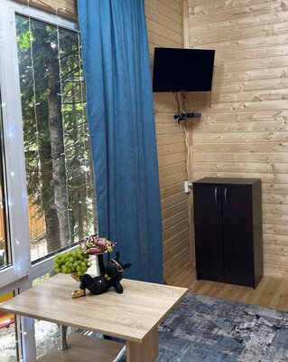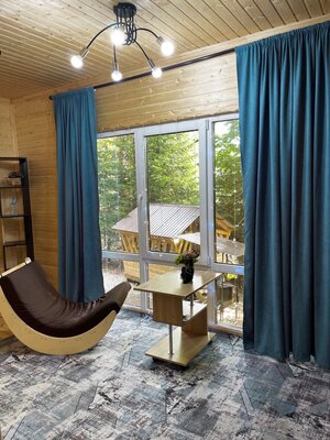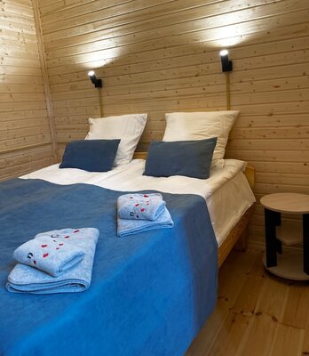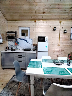 К услугам гостей два комфортабельных домика на 4 и 6 человек, оснащенных всем необходимым для проживания: удобными кроватями, полностью оборудованной кухней (плита, микроволновка, чайник, холодильник, посуда) и беседкой с мангалом.