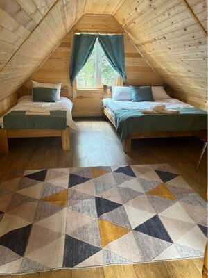 Комплекс расположен в 100 метрах от реки София. Для размещения гостям предлагаются двухэтажные деревянные коттеджи, вмещающие 2, 4 или 6 человек. Каждый домик оборудован индивидуальным санузлом с душем, мини-кухней (без варочной плиты), удобной мебелью и телевизором.