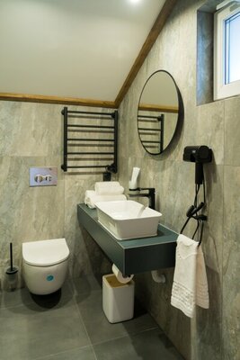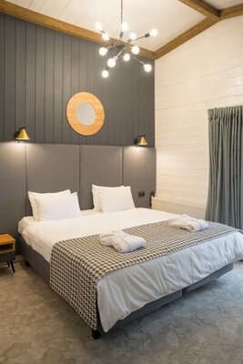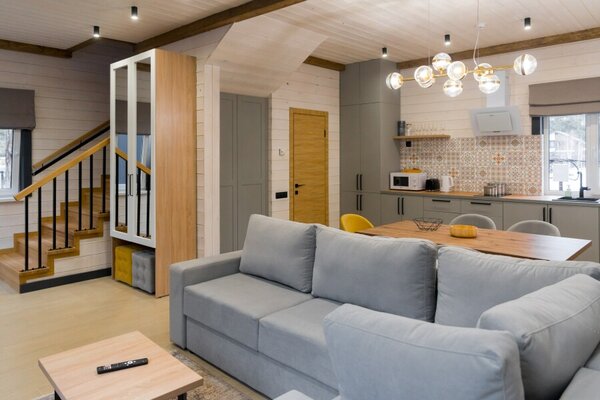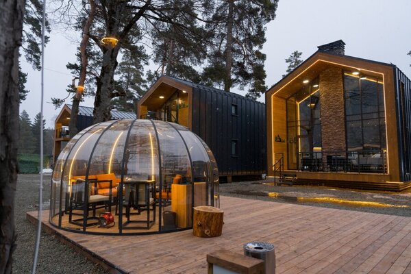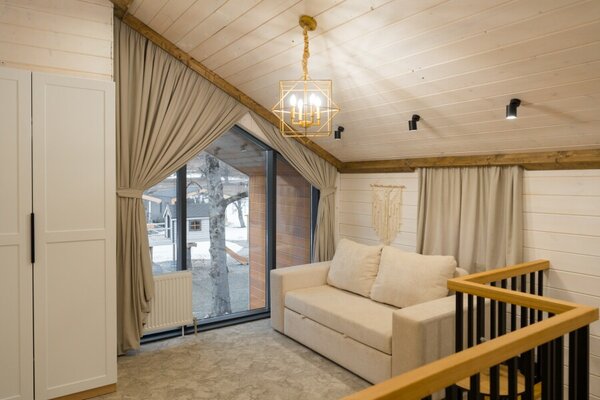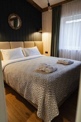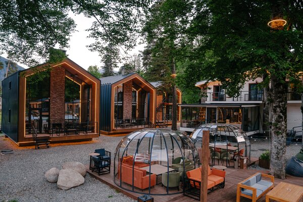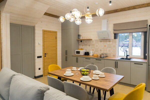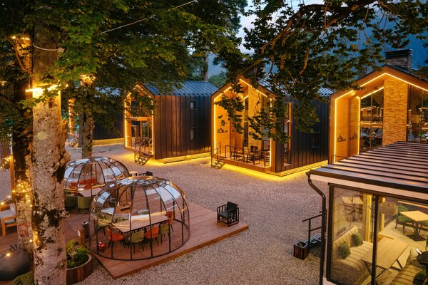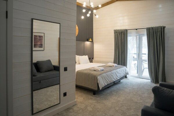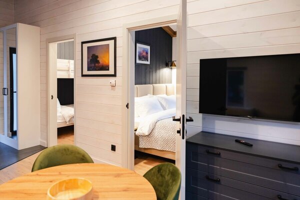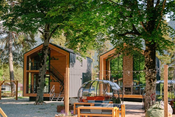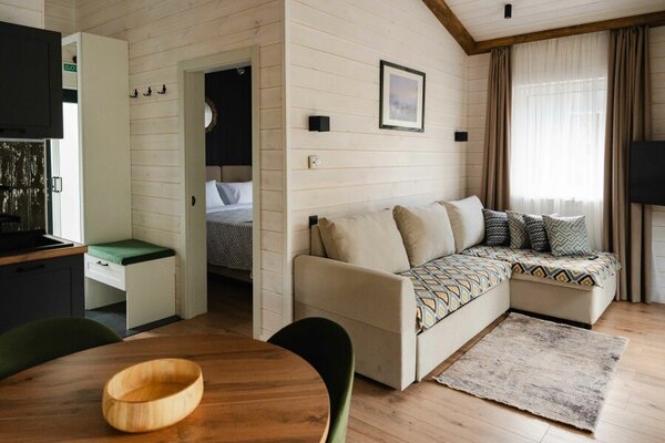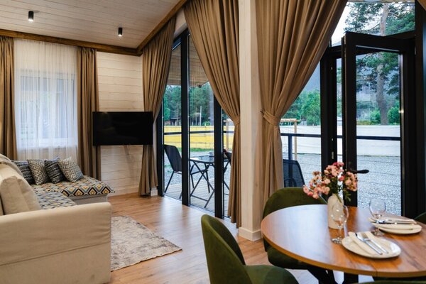 Комплекс предлагает гостям уютные и современные шале, где минимализм дизайна гармонично сочетается с продуманным до мелочей комфортом. Каждый просторный номер представляет собой полностью оборудованные апартаменты с современной кухней, удобной мебелью и теплыми, располагающими к отдыху интерьерами. Будь то семейный отпуск или романтическое уединение, здесь легко почувствовать себя как дома: приготовить ужин из свежих местных продуктов, собрать всю семью за большим столом или просто расслабиться после насыщенного дня, проведенного на лоне природы.