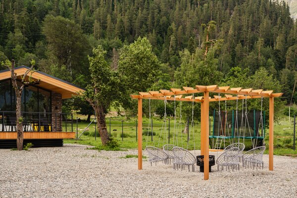 Мы позаботились о том, чтобы ваш отдых был не только комфортным, но и незабываемым. Для самых маленьких гостей обустроена яркая детская площадка с увлекательным домиком на дереве и энергичным батутом, где их ждут часы веселья. Взрослые же могут насладиться неторопливыми вечерами: устроить ароматный пикник в уютных беседках с мангалом, собраться вокруг теплого костра под звездным небом или уединиться в гамаках, слушая шепот листвы и звуки природы. Бесплатный Wi-Fi и охраняемая парковка добавляют удобства, а удобное расположение вблизи магазинов, аптек и всесезонного горнолыжного курорта «Архыз» делает пребывание еще более комфортным и беззаботным.