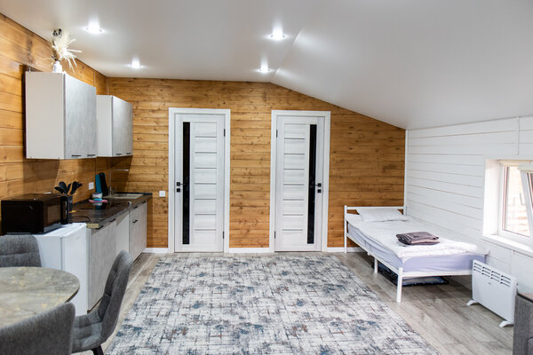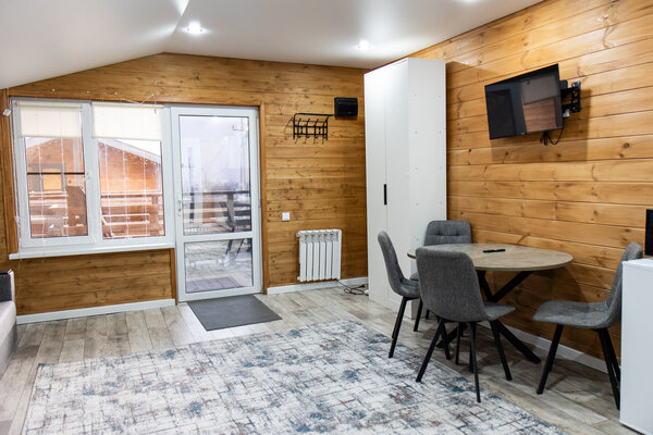 К вашим услугам уютные деревянные домики и просторные номера, где современный комфорт гармонично сочетается с природной атмосферой. Наслаждайтесь панорамными видами на окрестности и ощущением безмятежности, которое дарит каждый момент пребывания.